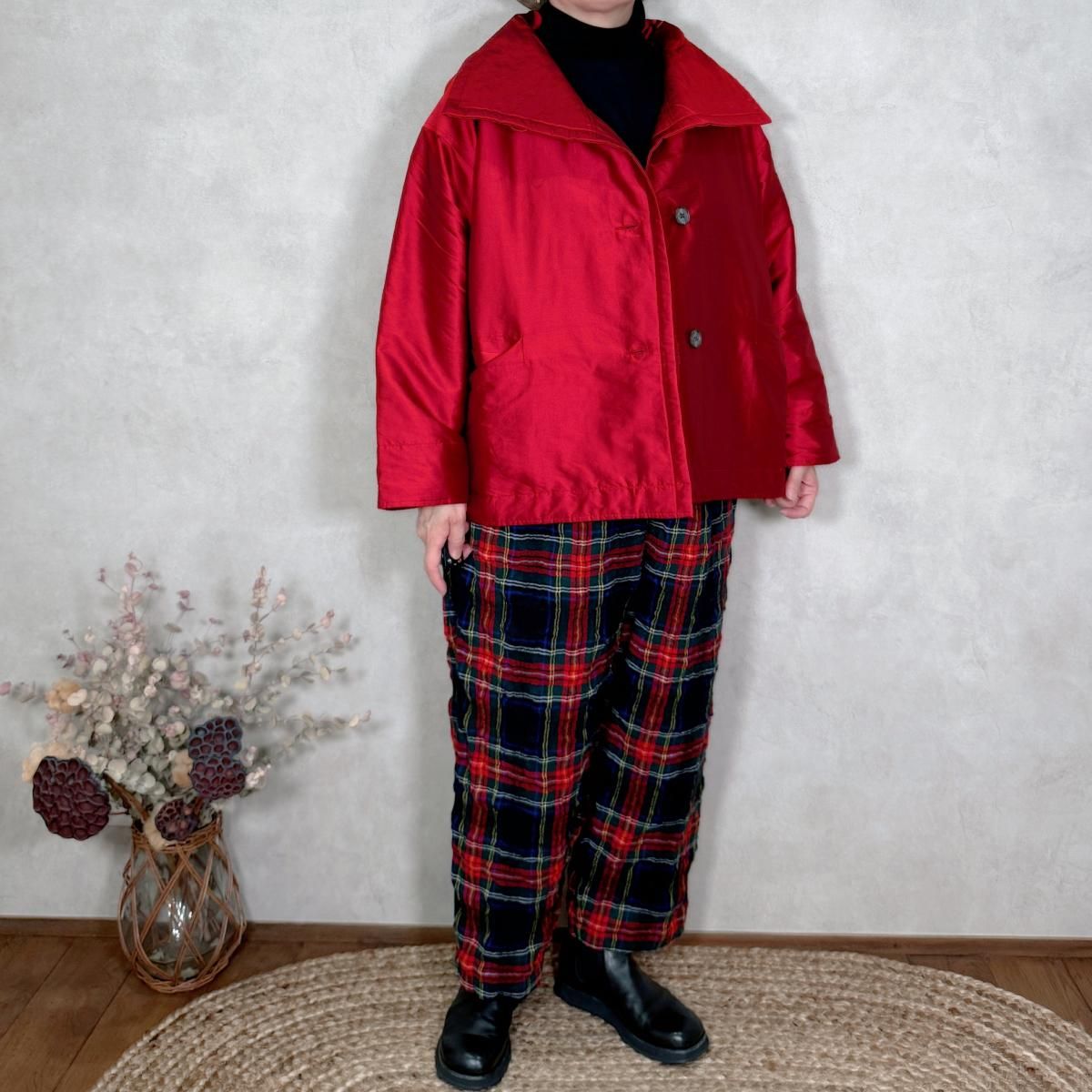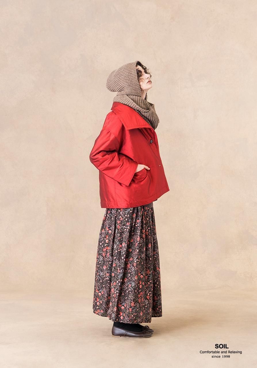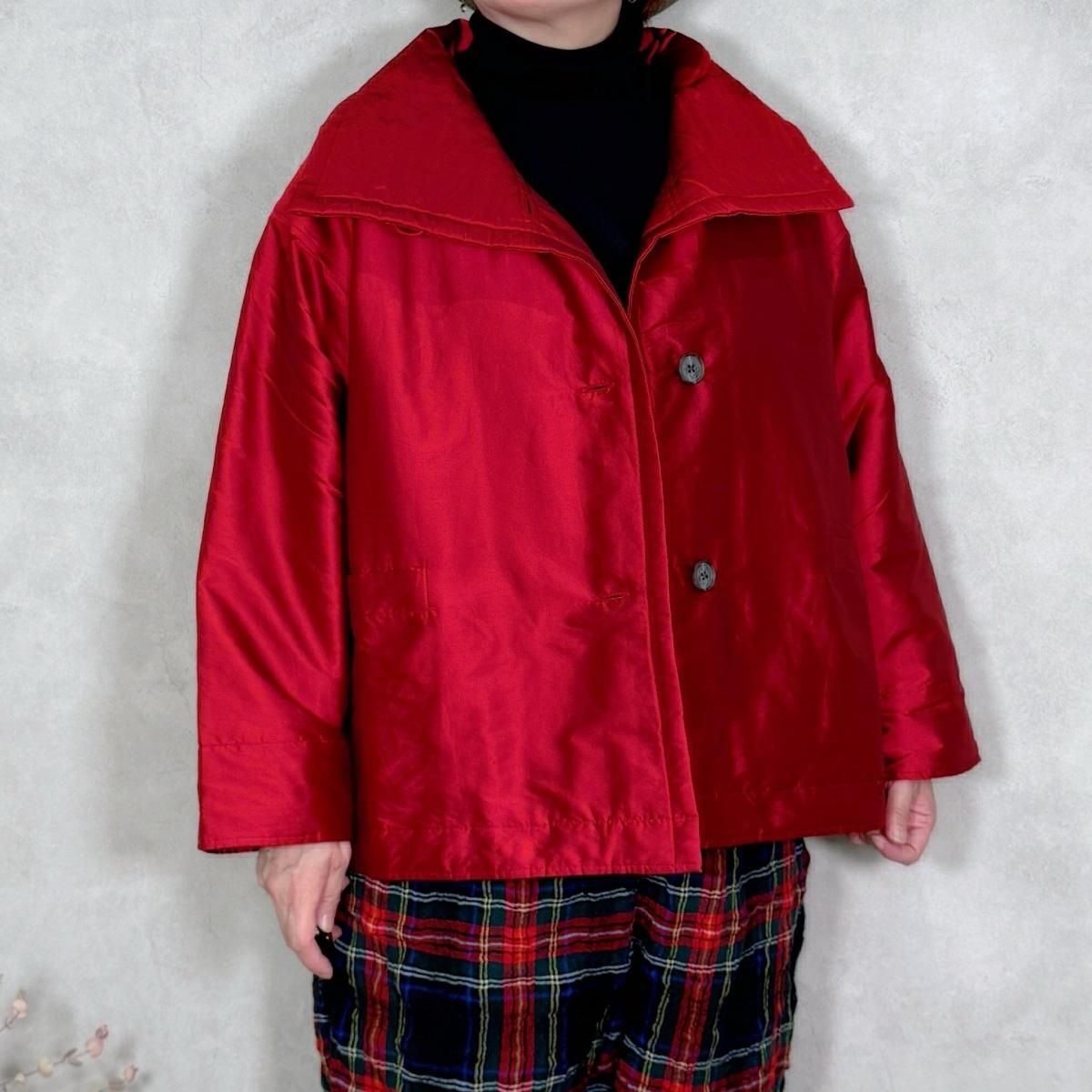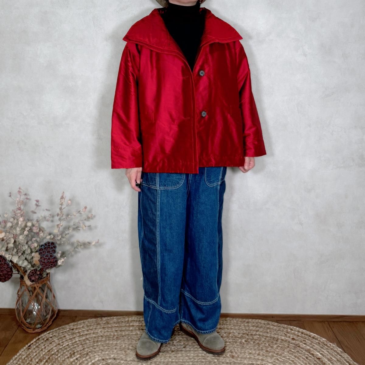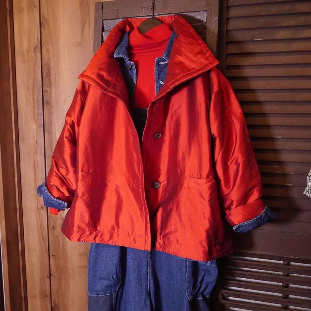 パッと目を惹くアウターは、シックになりがちな秋冬のコーディネートに華を添えてくれます。ゆったりしたサイズ感。裏地はキルティングになっていて着心地の良い1着。パンツスタイルにもワンピースにも合わせやすいアウターです。