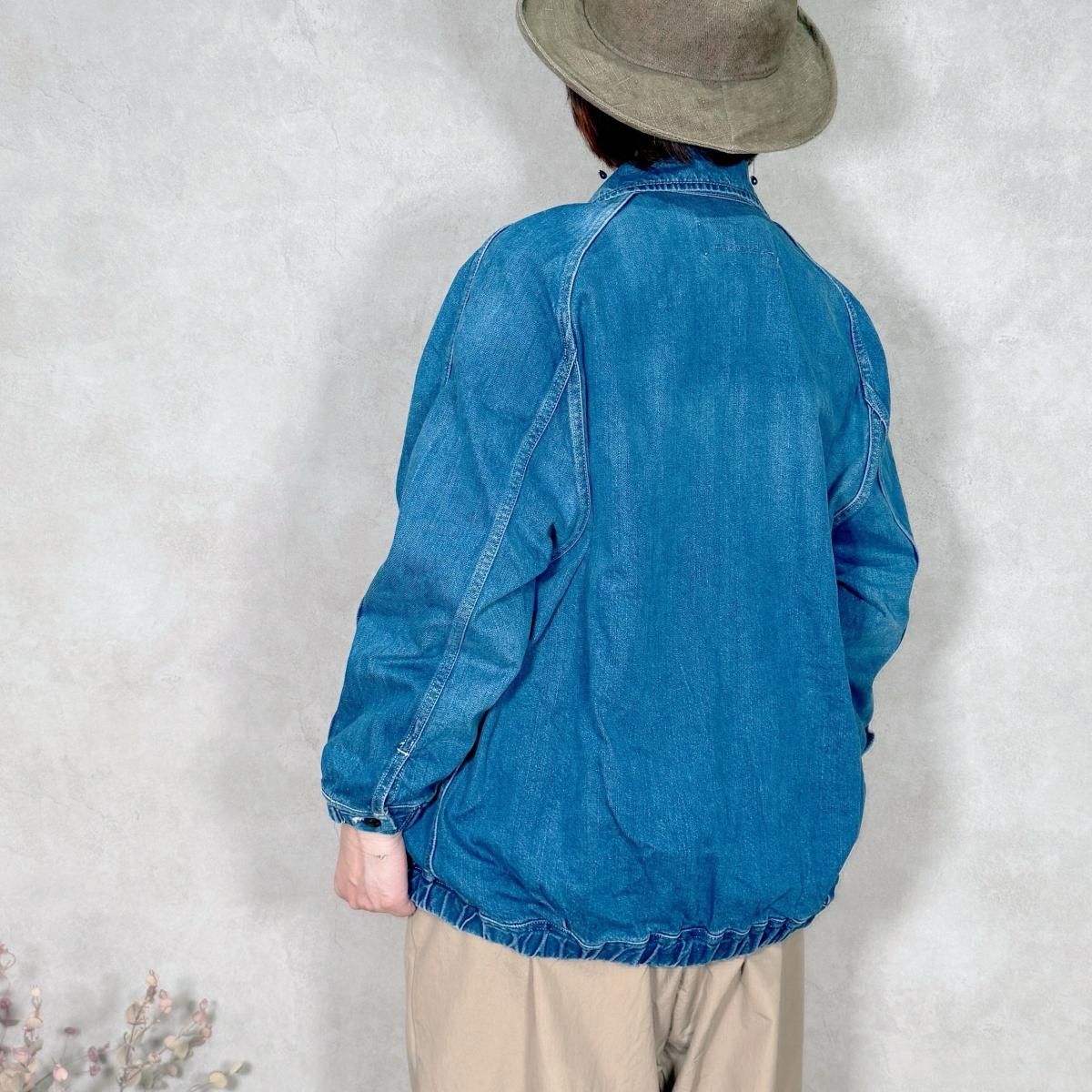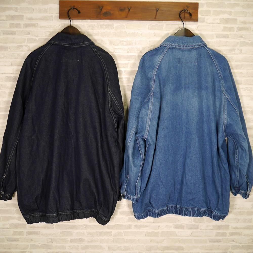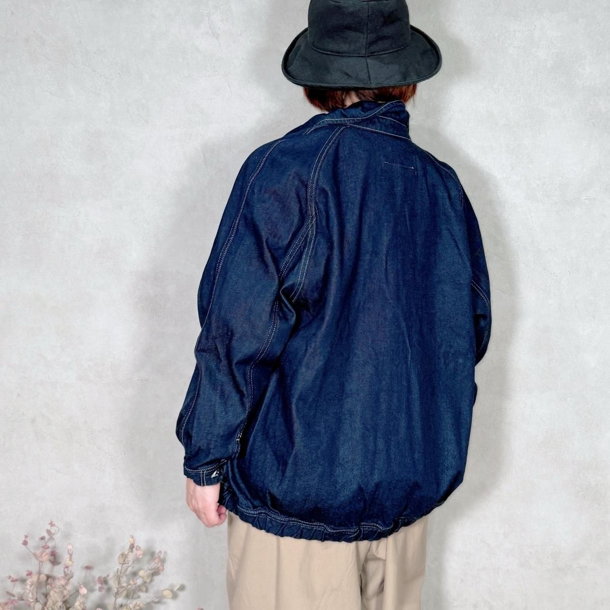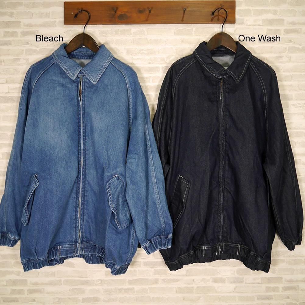 ボックスシルエットのデニムブルゾン。肩をややドロップさせたゆとりのあるサイジングで、裾にゴムを効かせています。フロントはファスナー開き。カラーは加工を施した B LEACH と 洗いを掛けた ONEWASH の 2 色展開です。