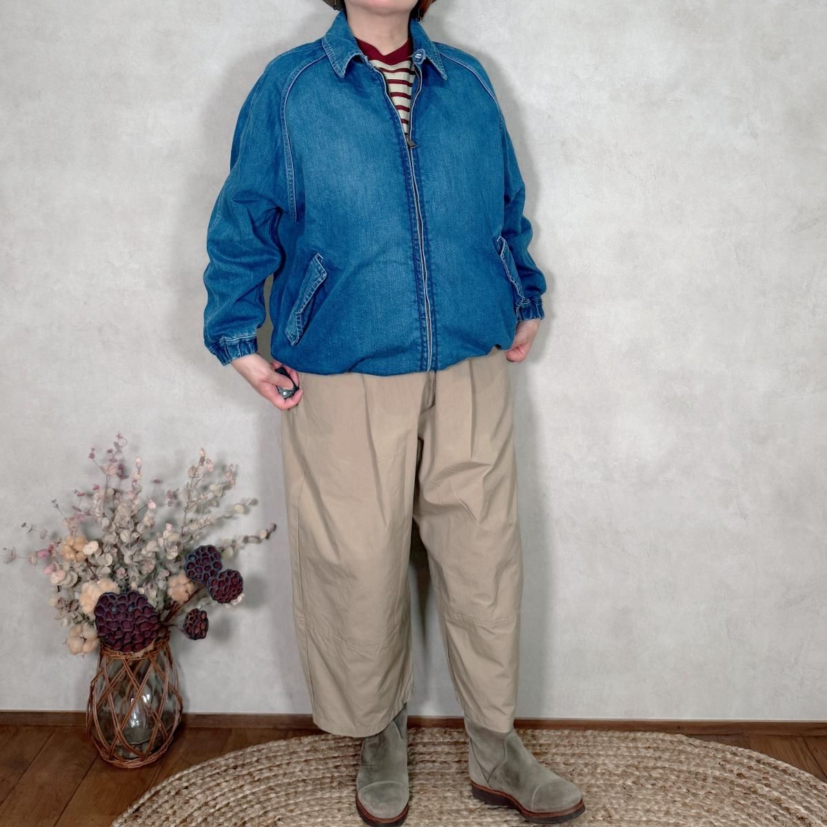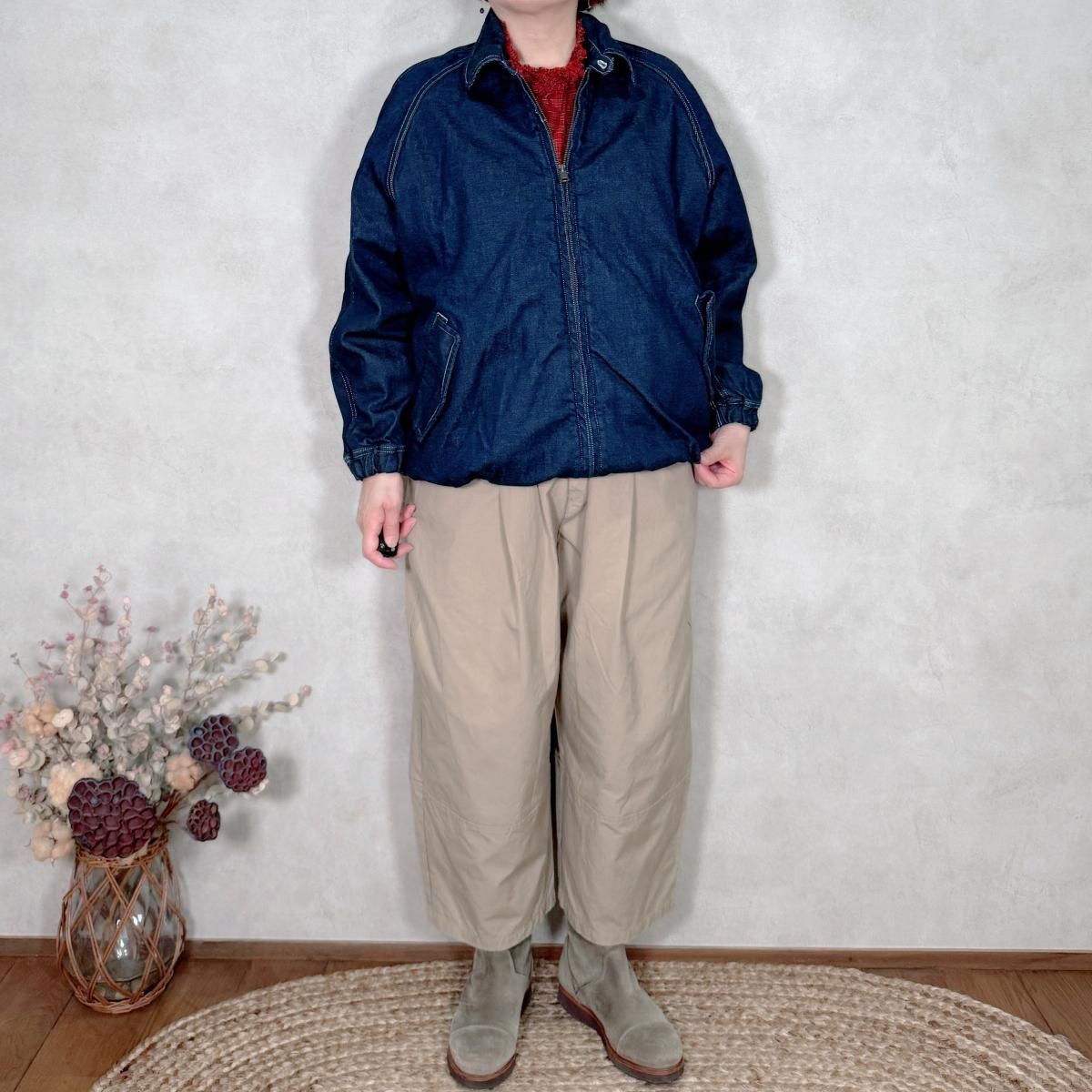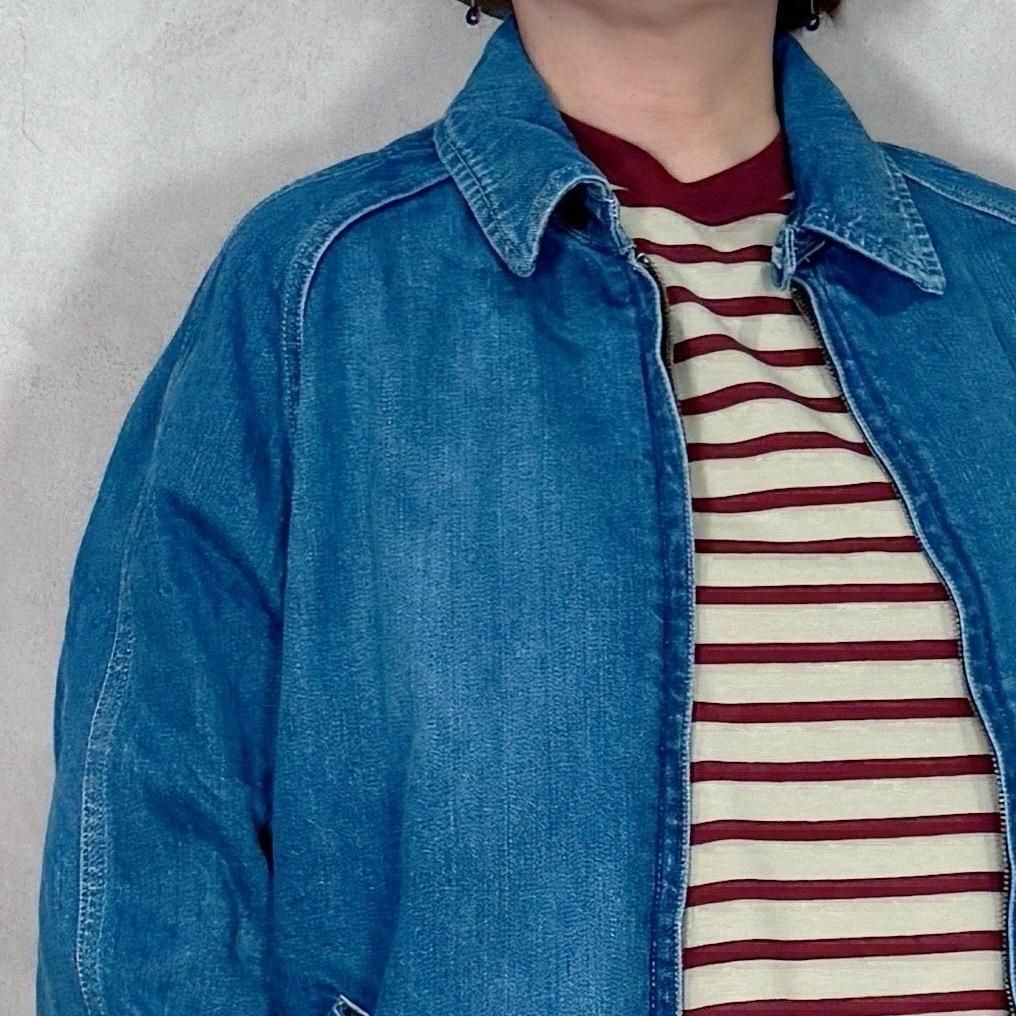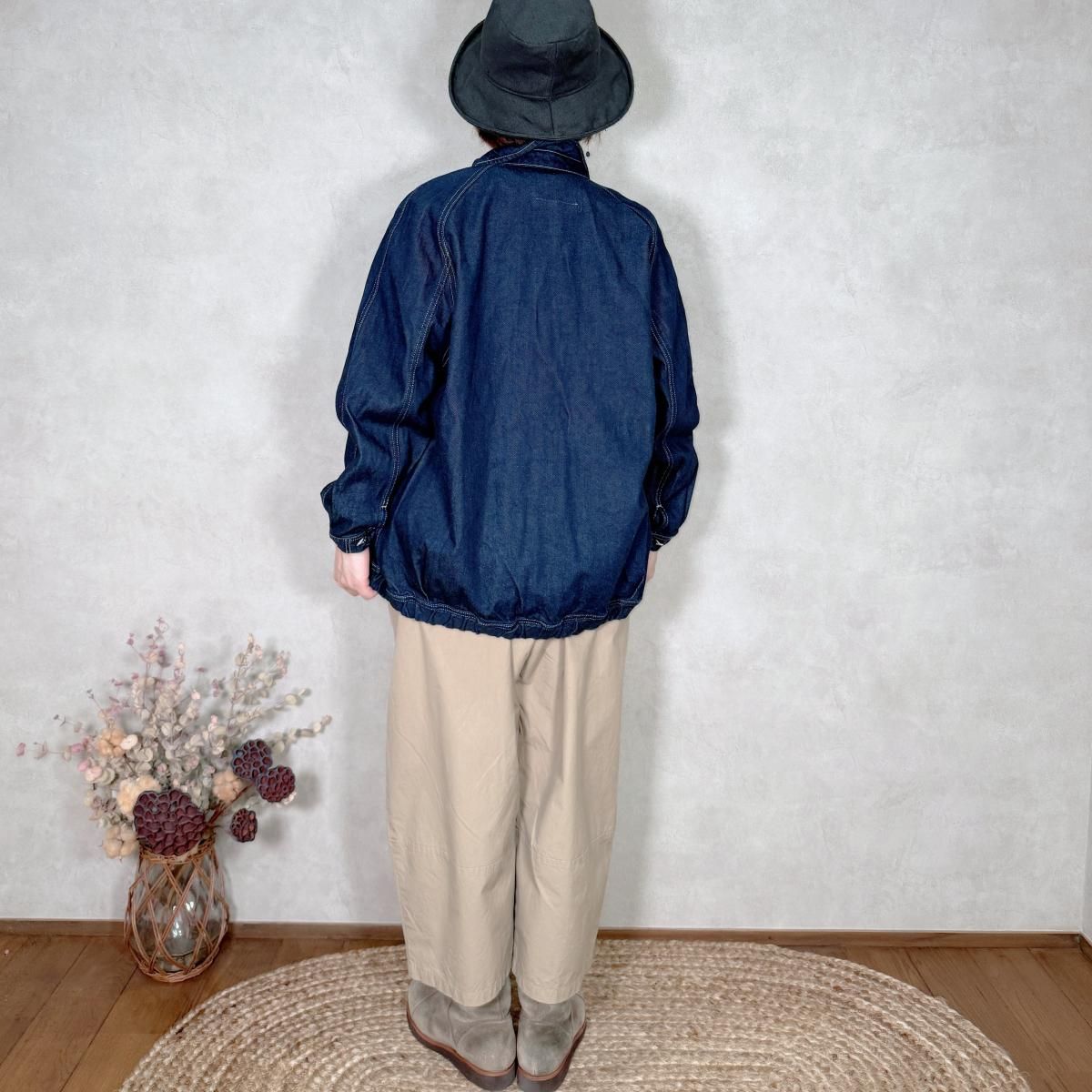 ボックスシルエットのデニムブルゾン。肩をややドロップさせたゆとりのあるサイジングで、裾にゴムを効かせています。フロントはファスナー開き。カラーは加工を施した B LEACH と 洗いを掛けた ONEWASH の 2 色展開です。
