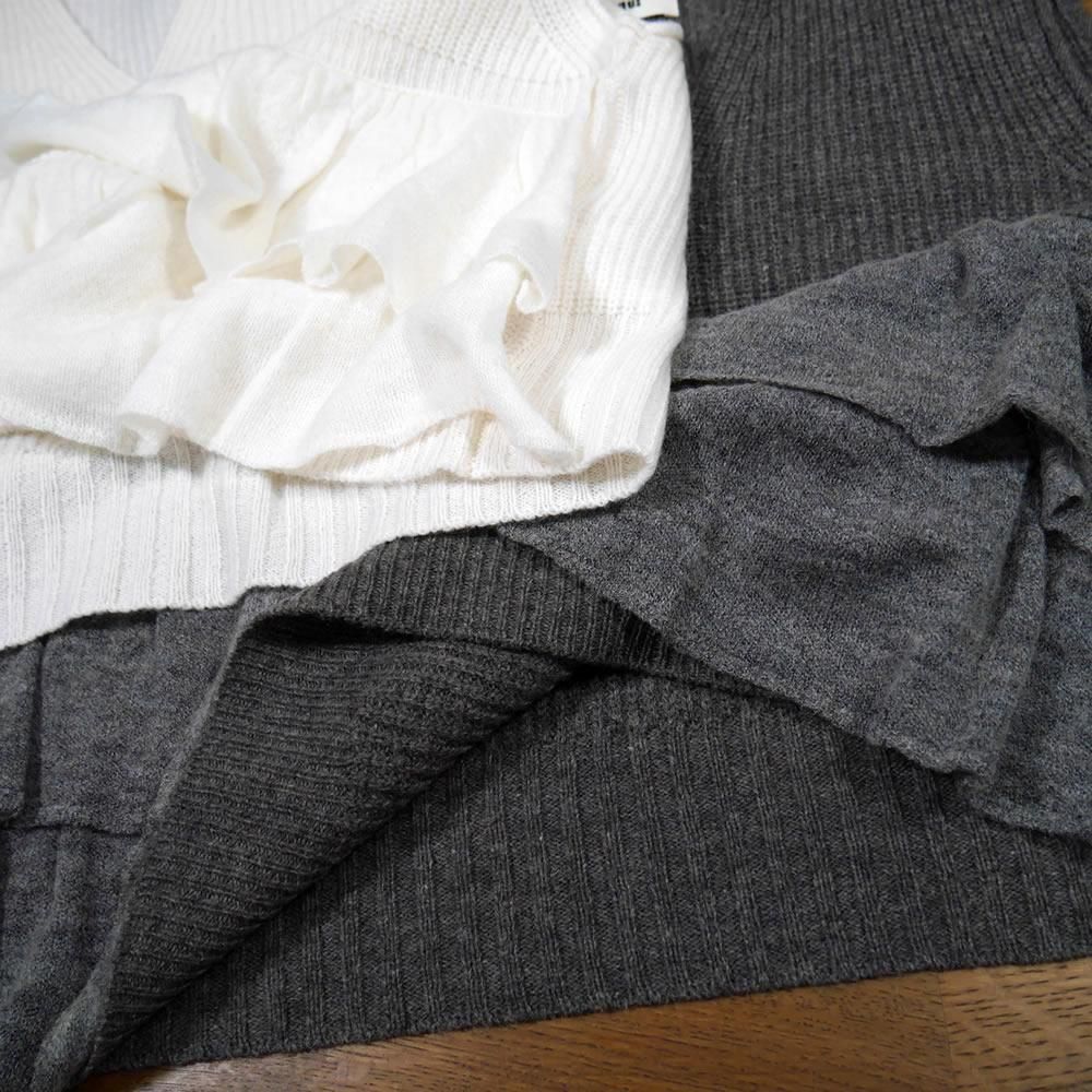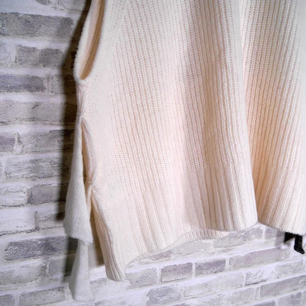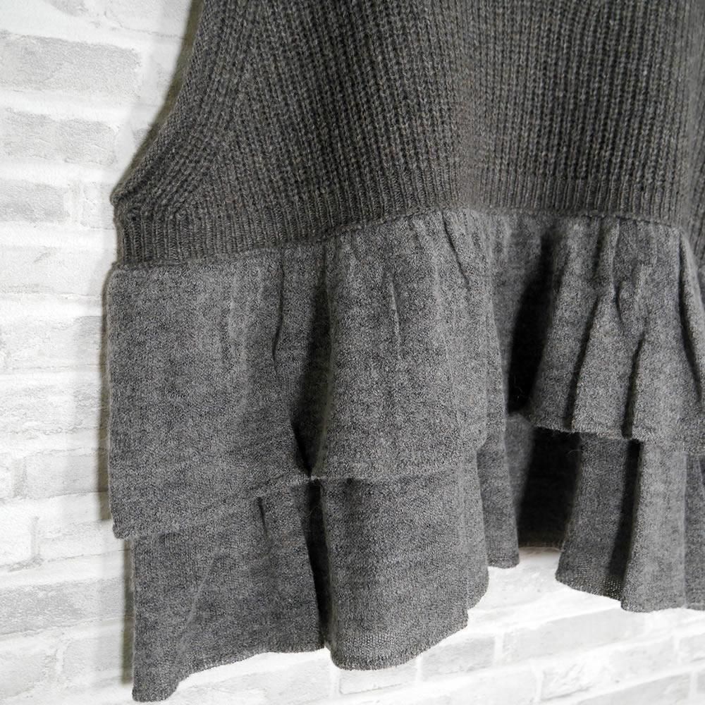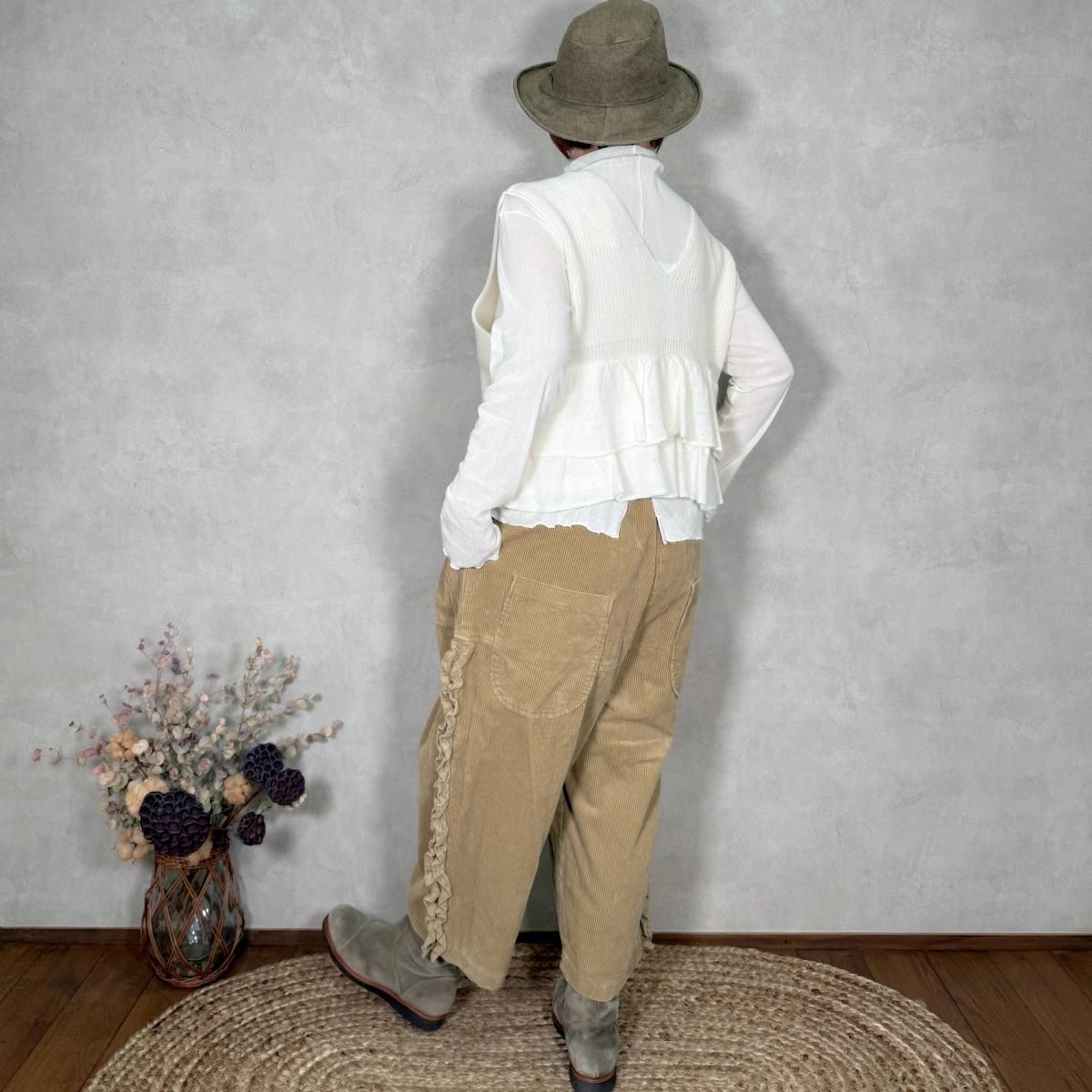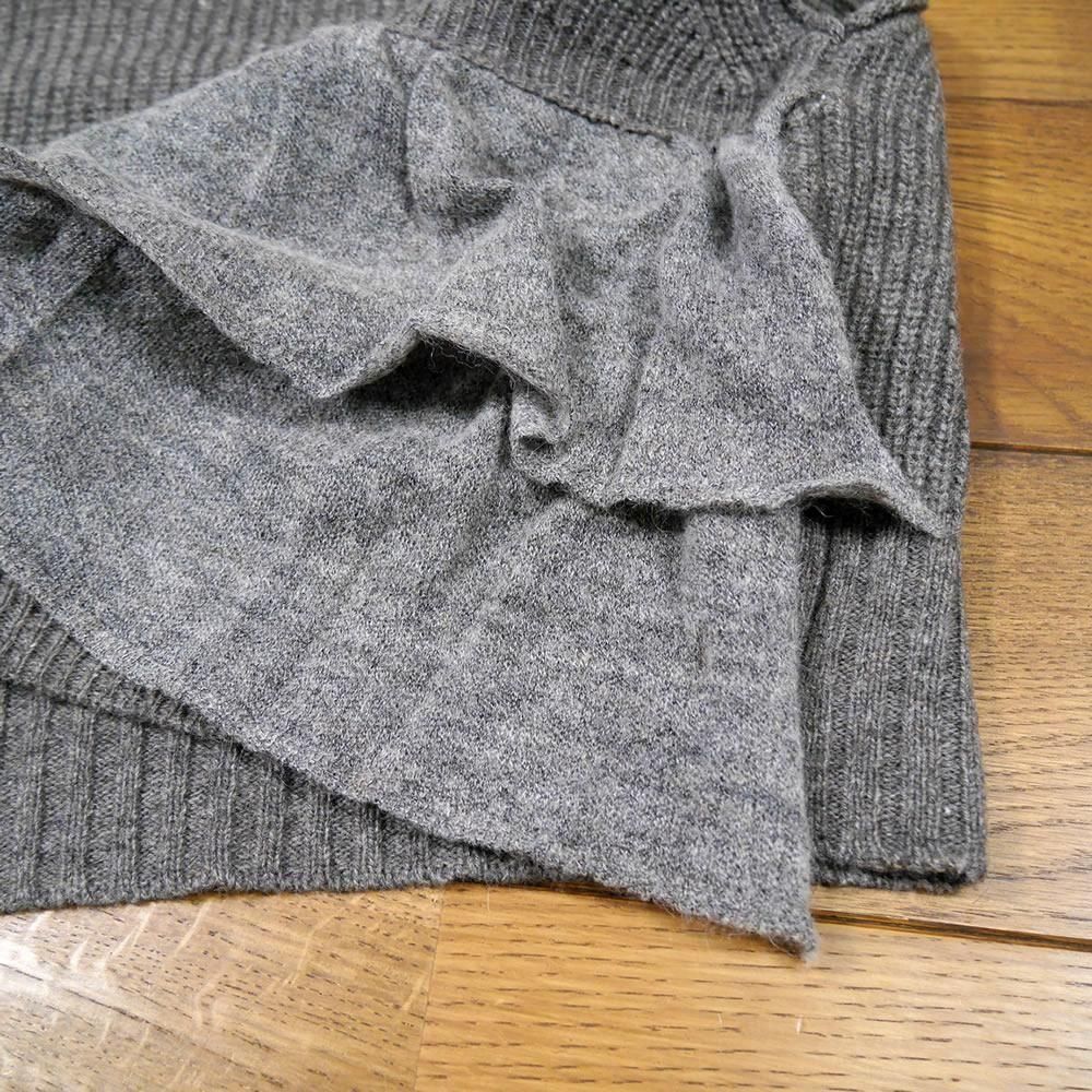 柔らかいメリノウールの糸にふわふわとした細番手のアルパカ混糸が掛け合わされたフリルが可愛いデザインのニットベストです。前後2WAYで着用頂けます。 Material: ウール 100% Size Free(約):身幅 57cm, 着丈 56cm, 肩幅 43cm, アームホール 66cm Made in China