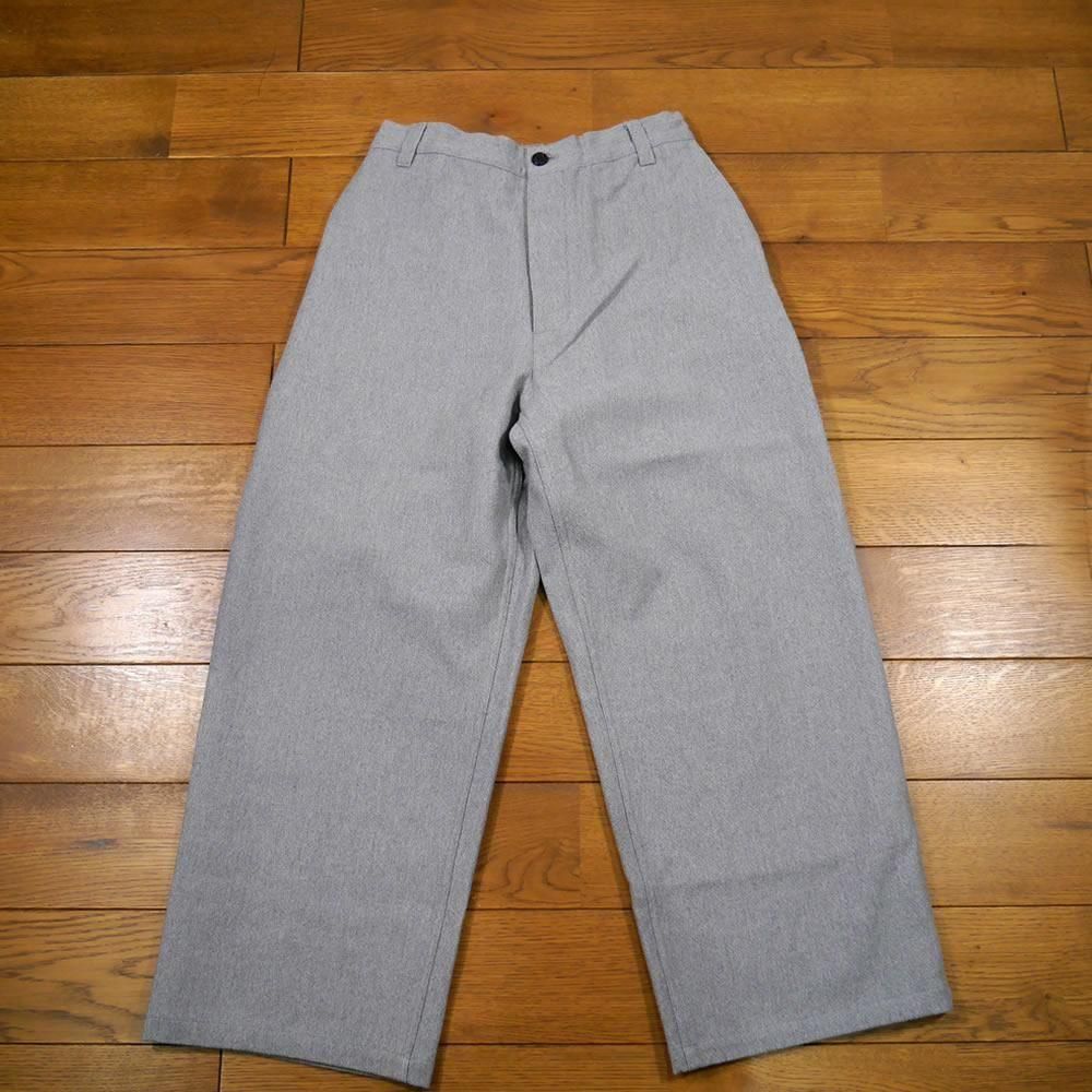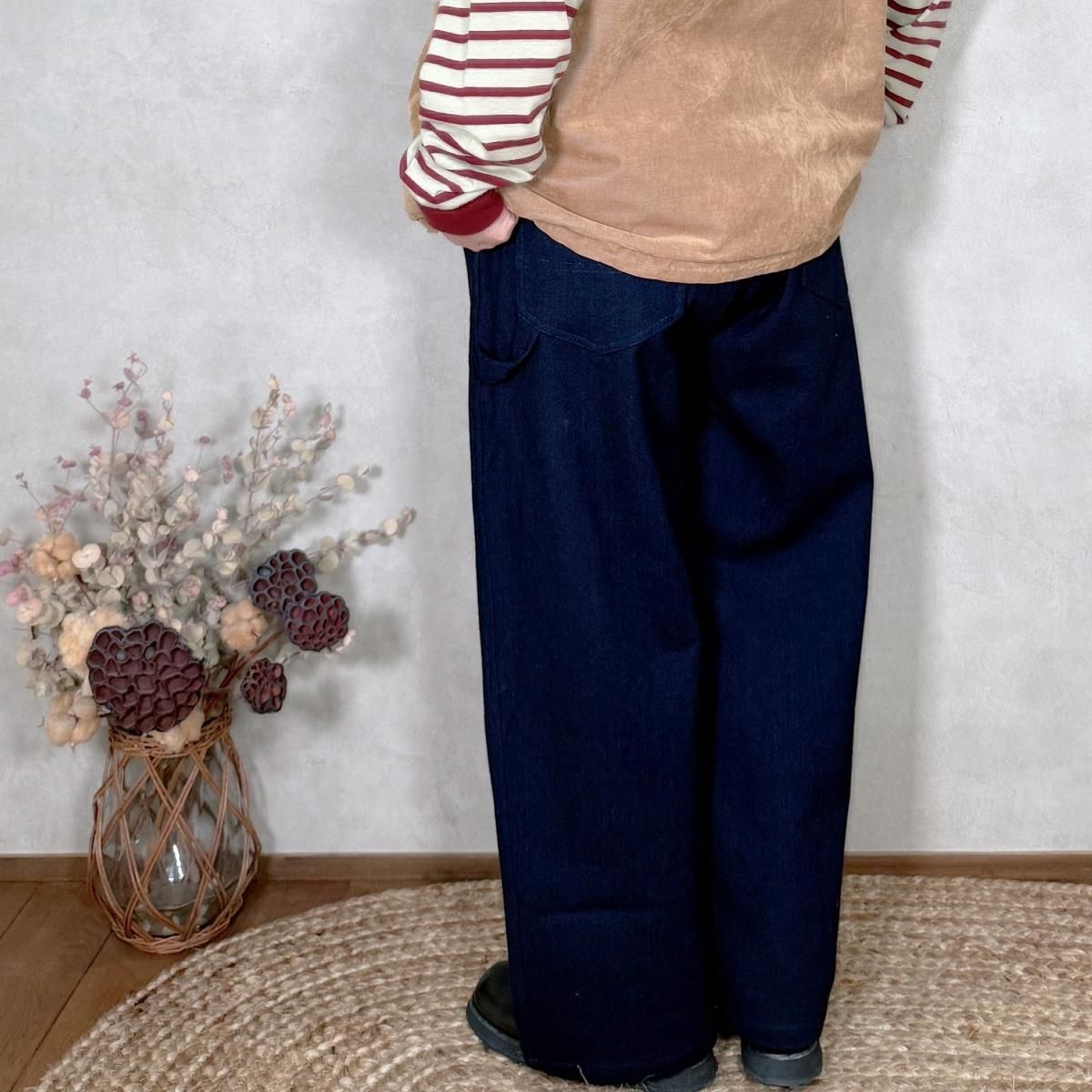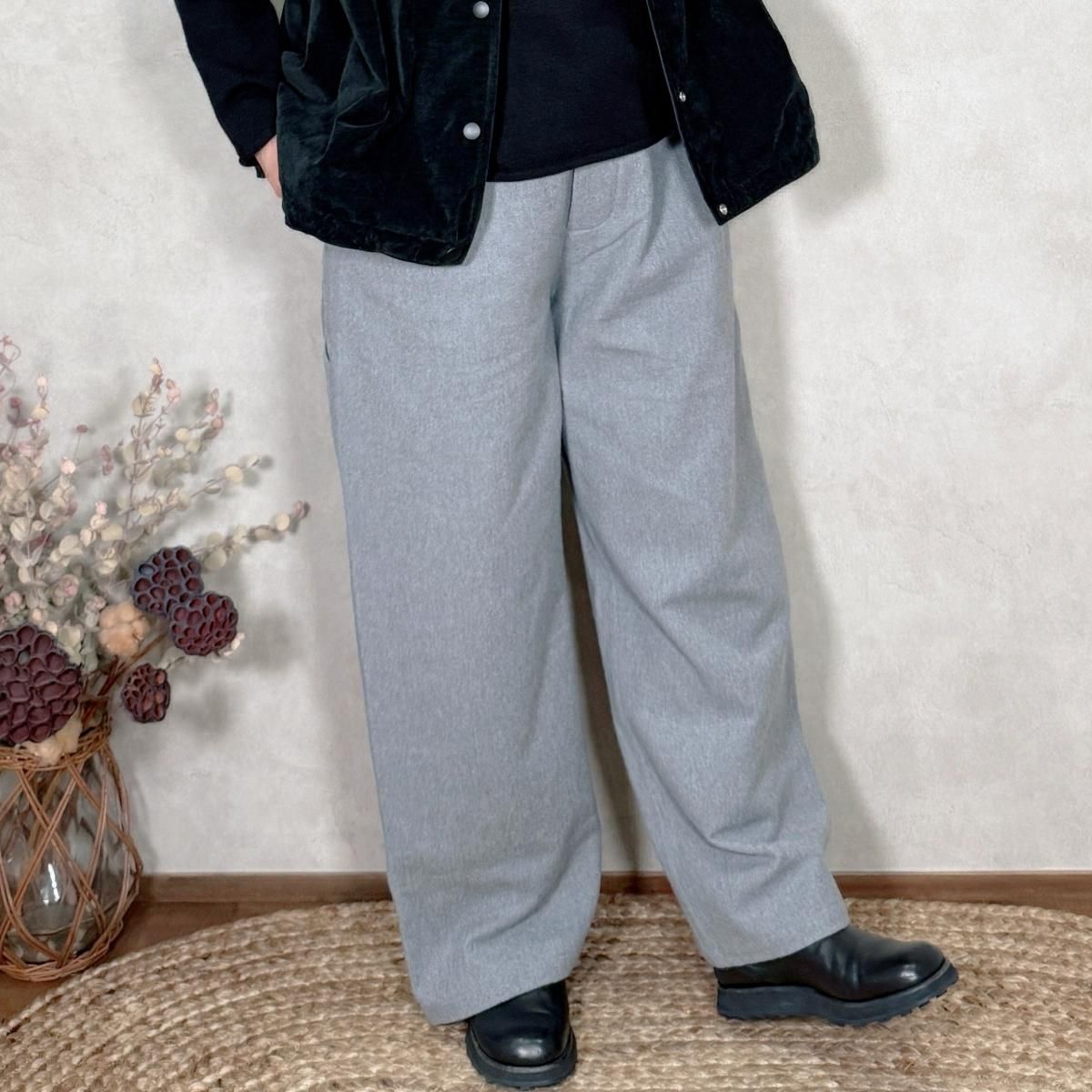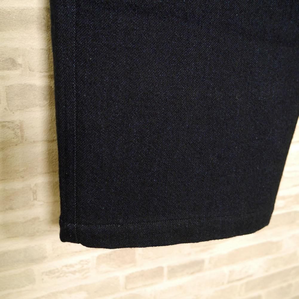 デニムの産地である岡山県にて織られたコットンウールのデニム素材のパンツになります。コットンのたて糸にウールのよこ糸を打ち込んだ生地は表面に凸凹のある立体的な表情が特徴的。見た目の重量感とは異なり、着用時に軽く感じられるのも魅力です。