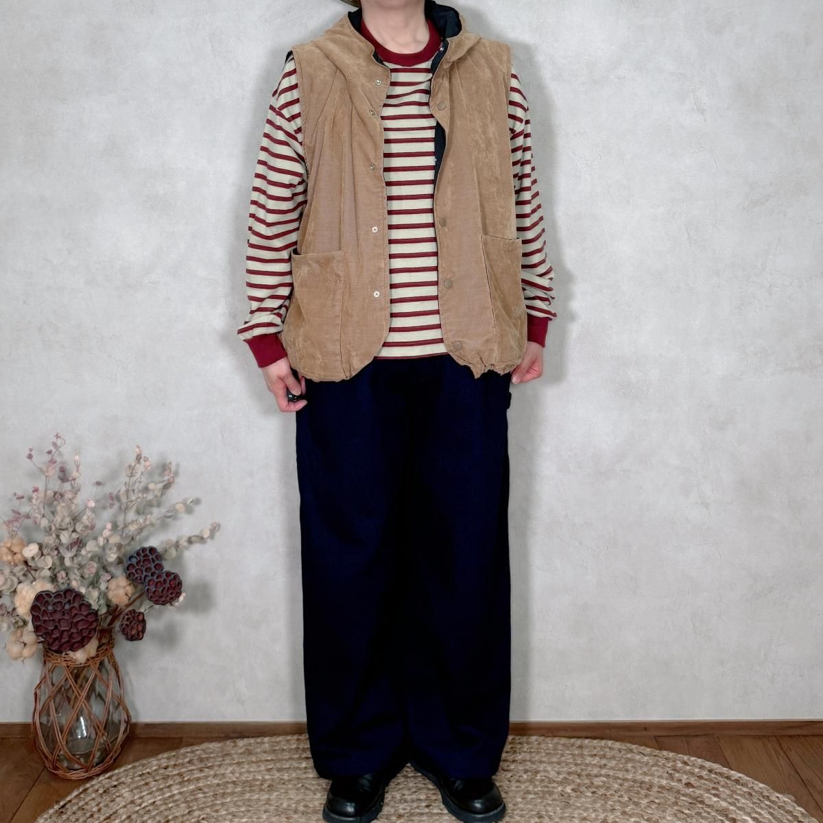 足を入れた瞬間に暖かい!軽い!と呟いてしまう履き心地のいいパンツです。ウエストの後ろがゴムになっているのも嬉しいデザイン。