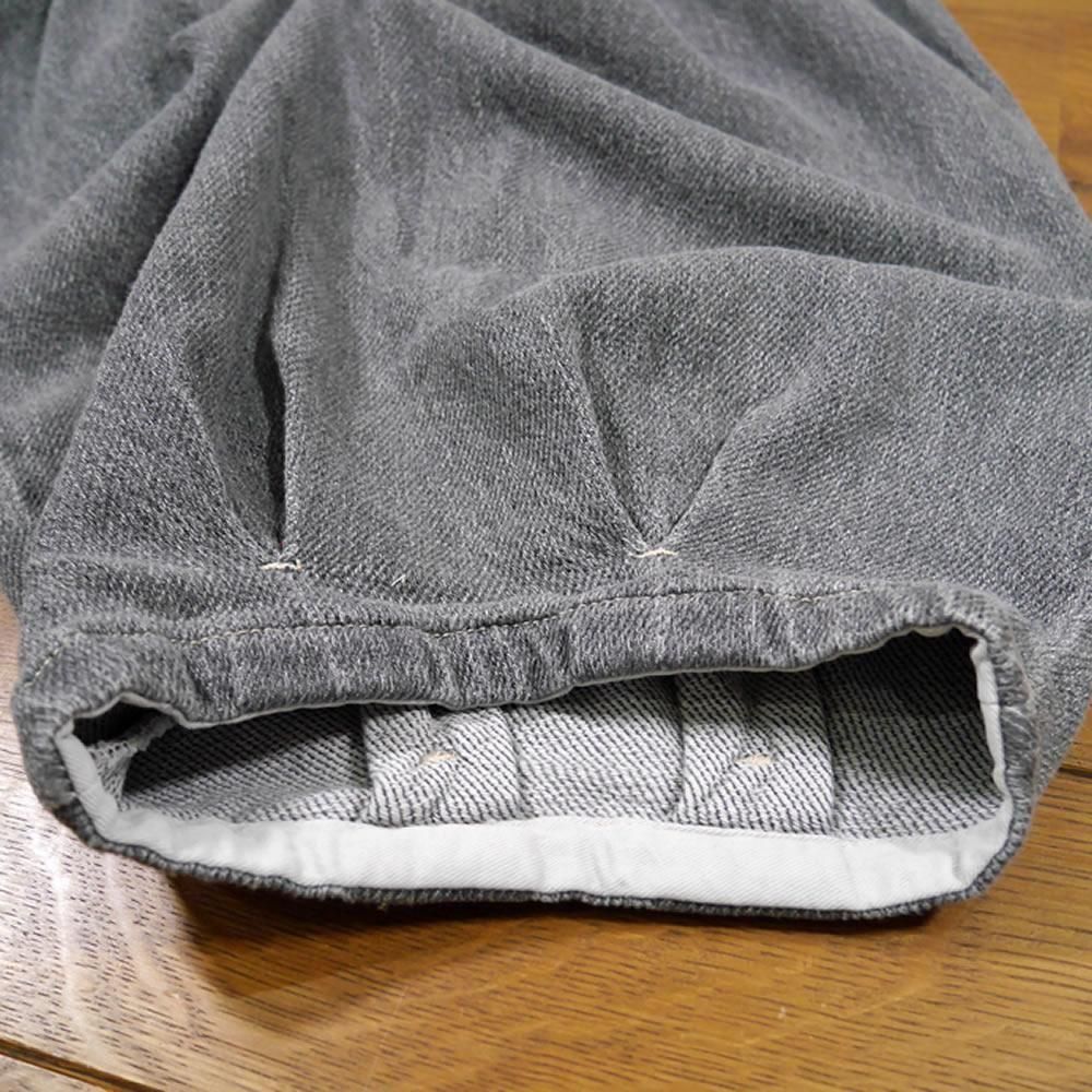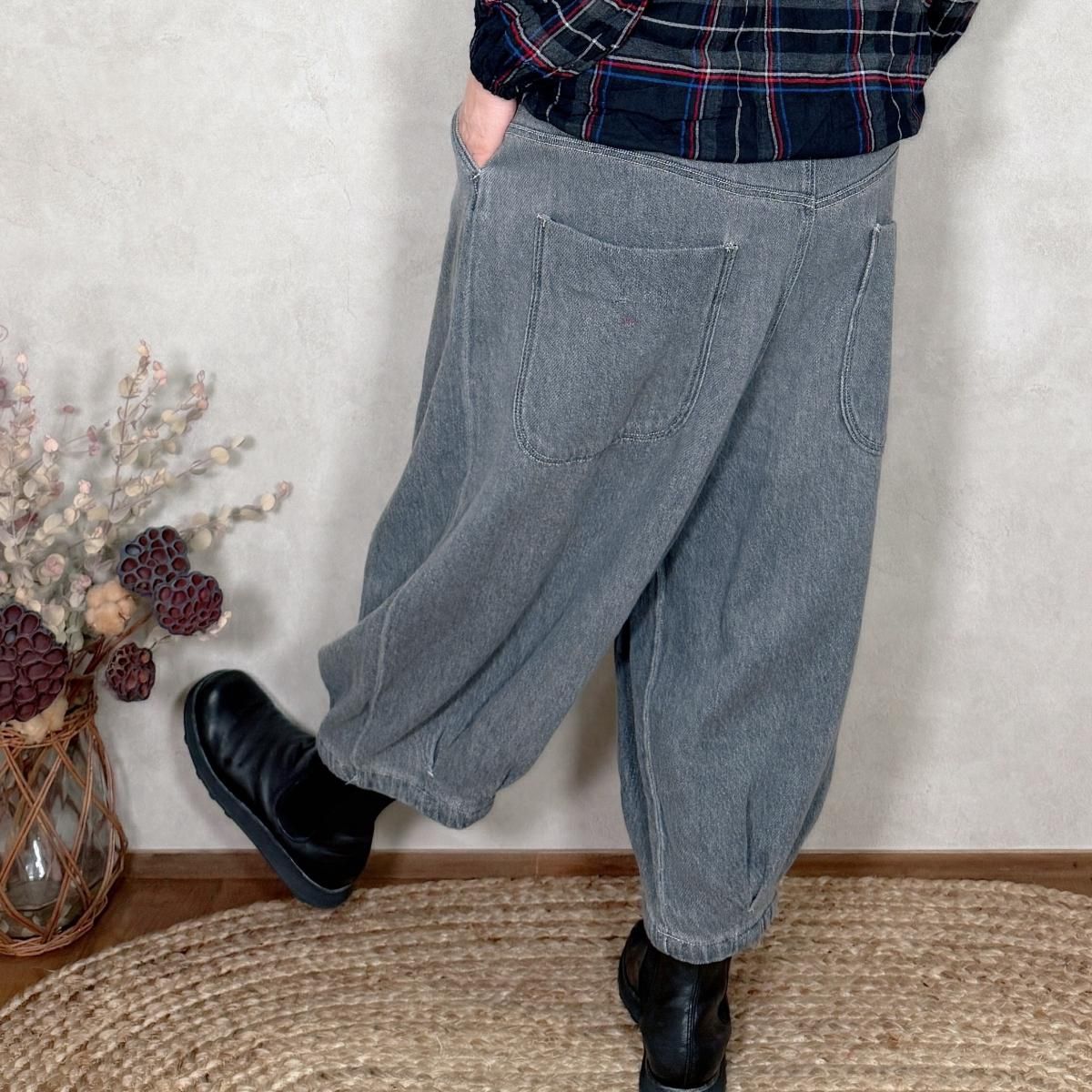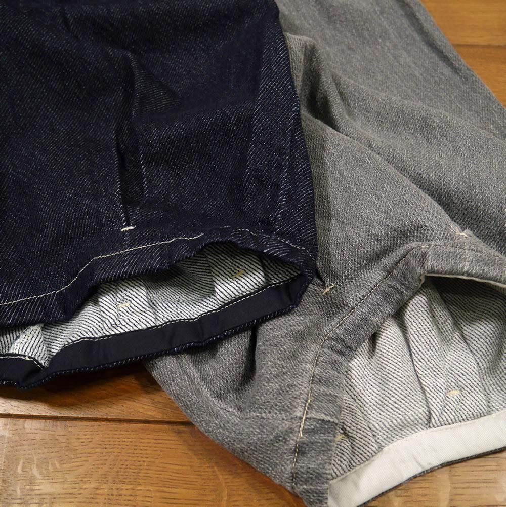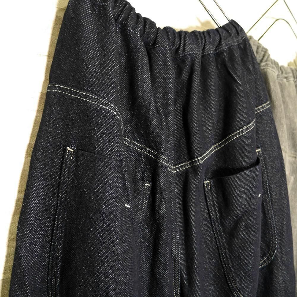 11ozの比較的厚みのある綾織の素材を使ったデニムパンツです。ワンウォッシュやフェード加工が施され、柔らかい風合いの落ち感があるパンツです。ヒップ周りがゆったりしたサイズ感で、股上も深めで裾にはタックが施されています。ウエストは総ゴム&紐付き仕様です。