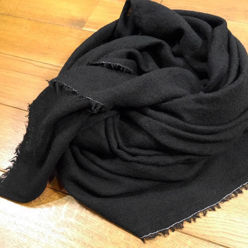 柔らかな肌触りのストール。ふっくらと空気を含んだ生地は首元に巻く際に適度なボリュームを出してくれます。防寒に、またコーディネートのプラスアイテムとしておすすめです。