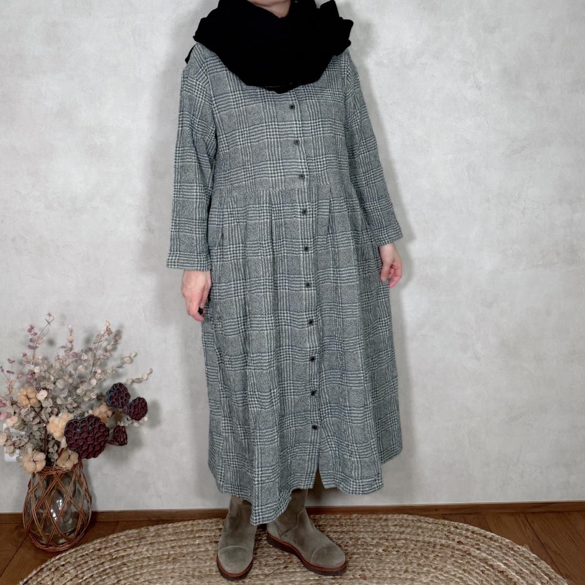 One Piece: tumugu コットンウールグレンチェックコートワンピース