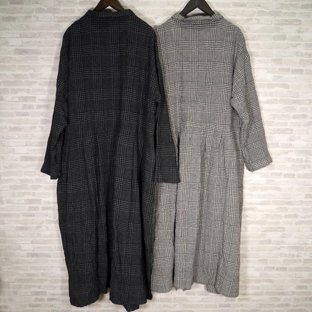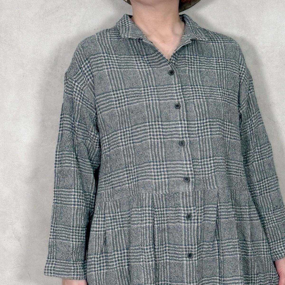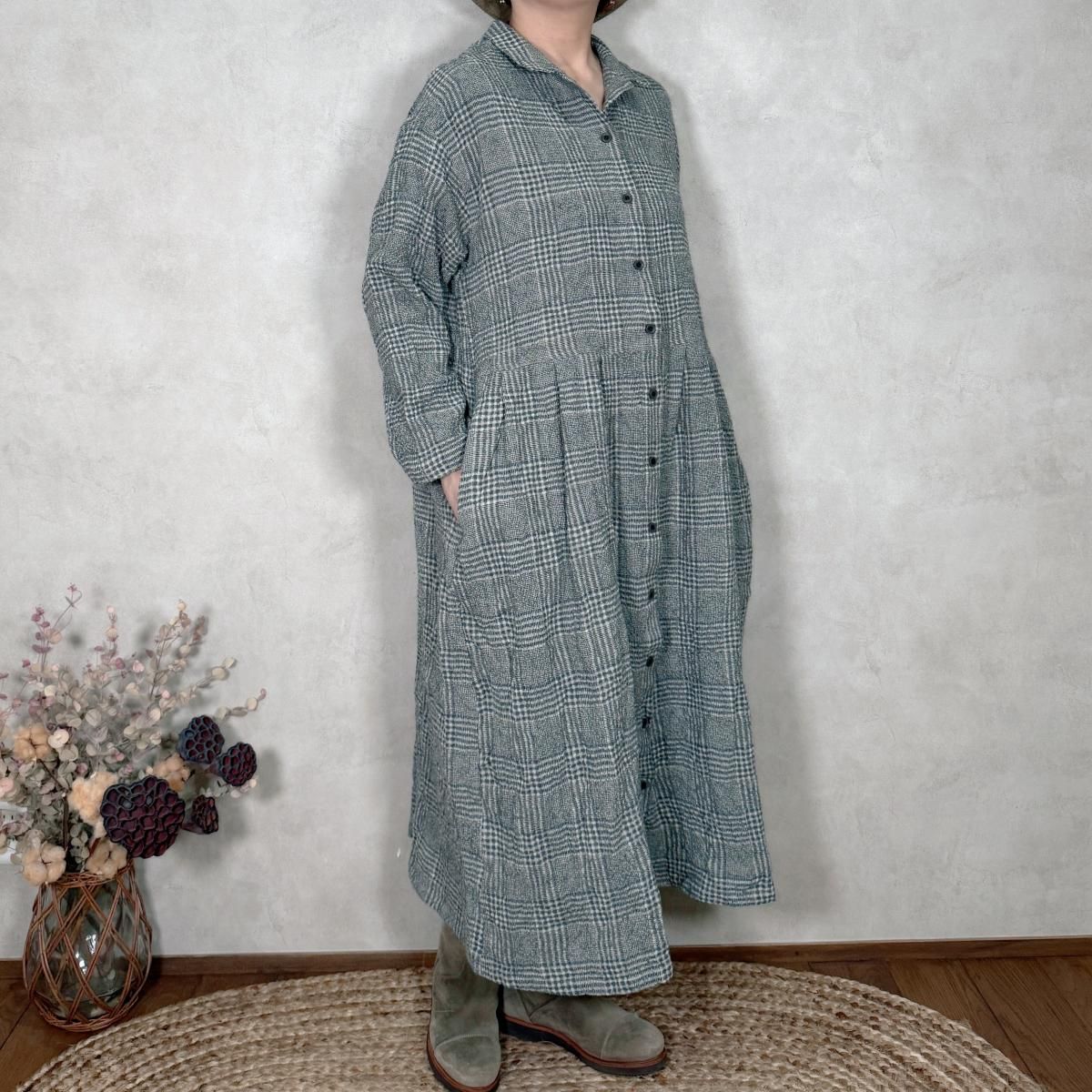 tumugu ツムグ/ TB25409 コットンウールグレンチェックコートワンピース