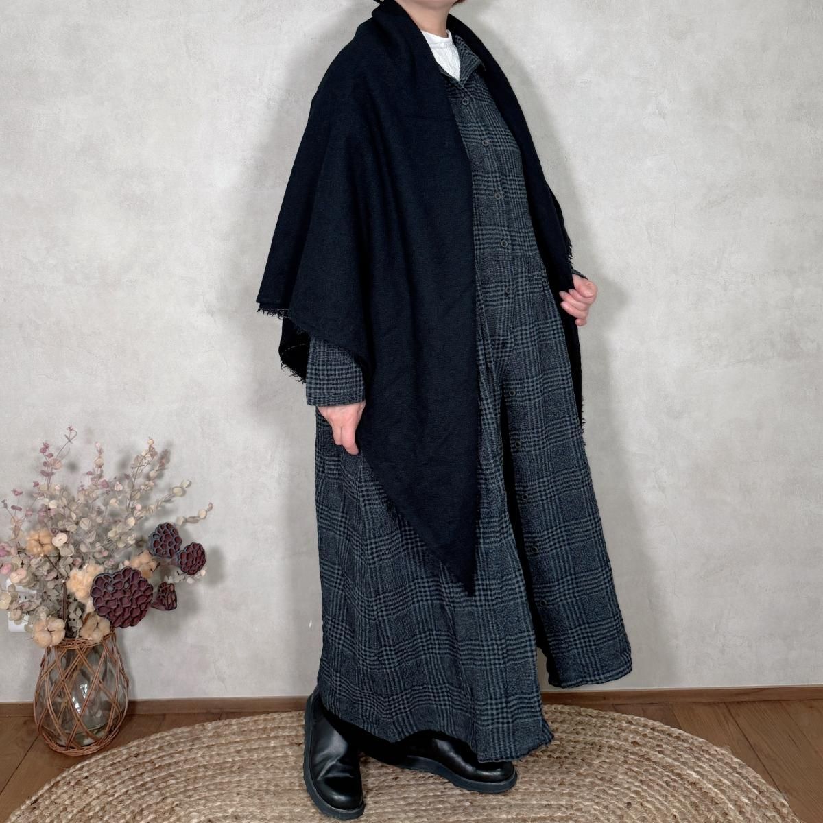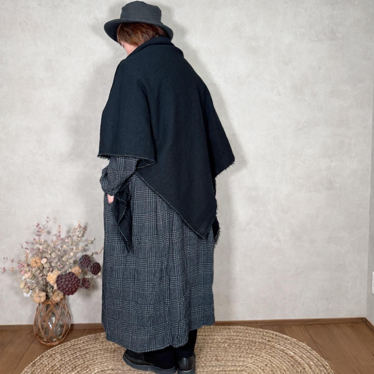 ボコボコした表情が特徴のウール混生地を使ったコートワンピースです。製品洗いをして更に縮絨させ風合いと温かみを出した素材感が素敵なアイテム。コートとしてもお使い頂ける上品で高級感のあるワンピースです。