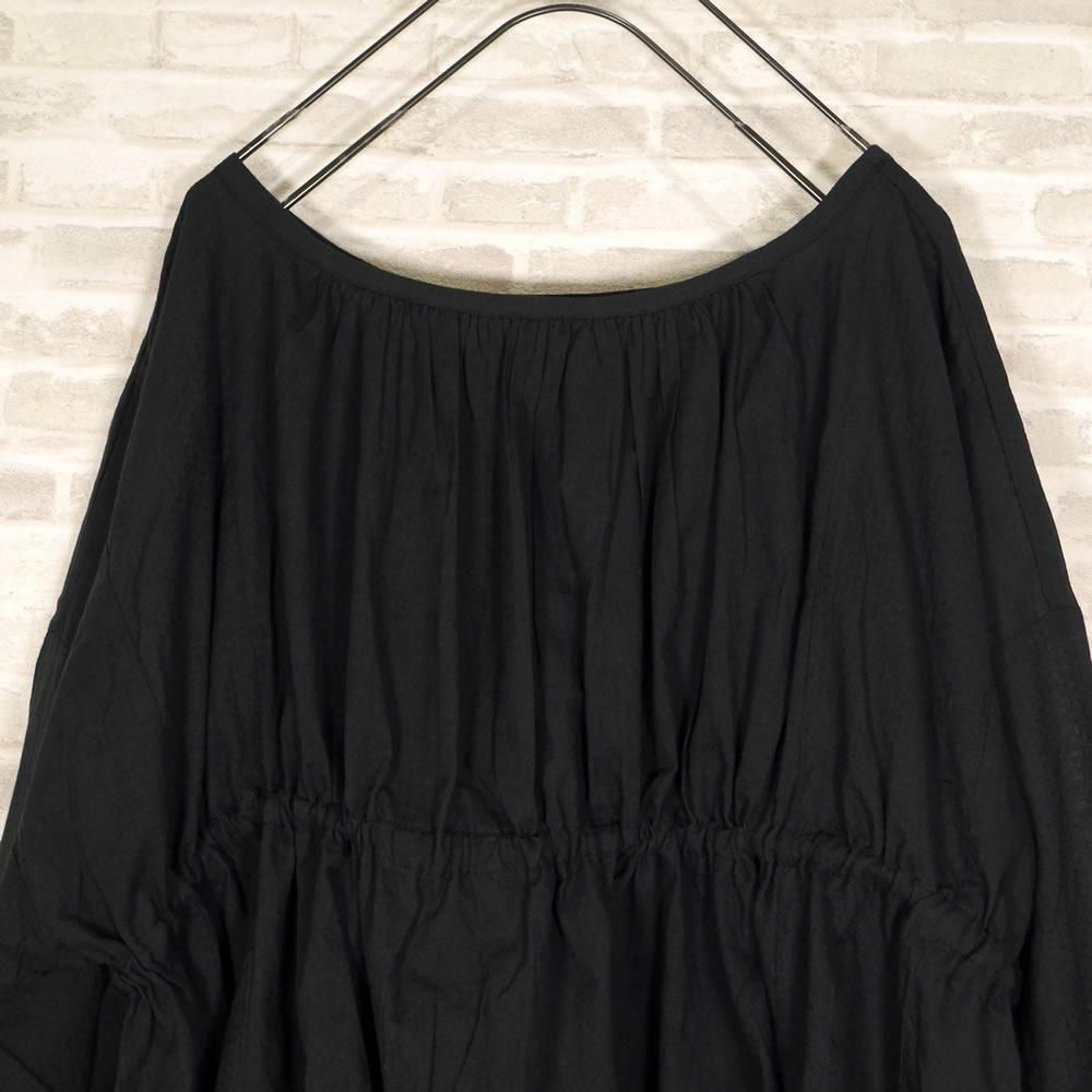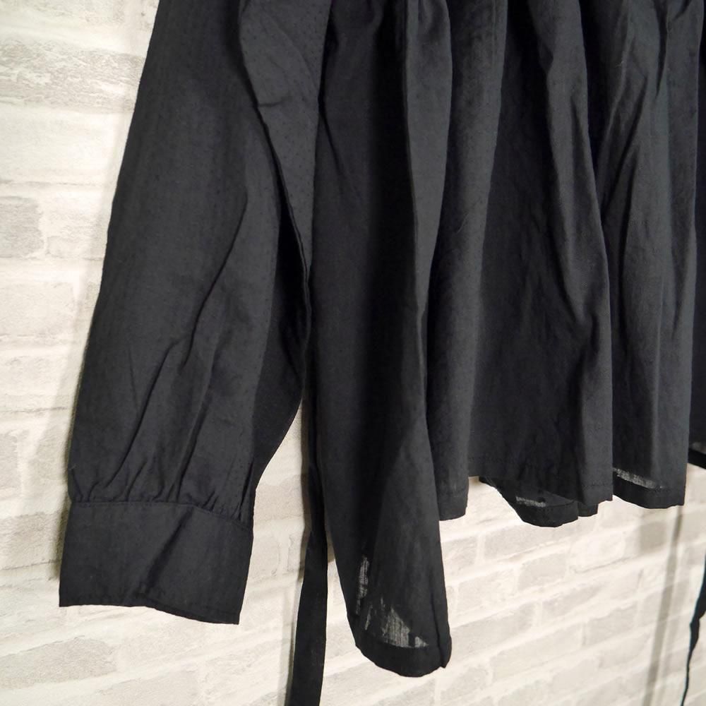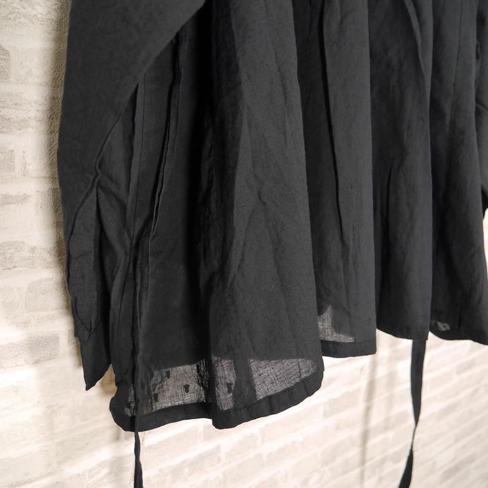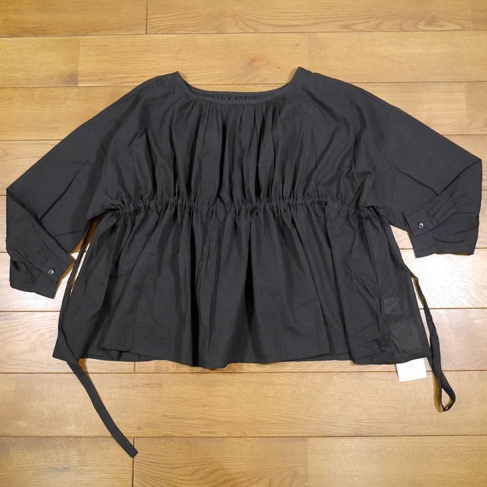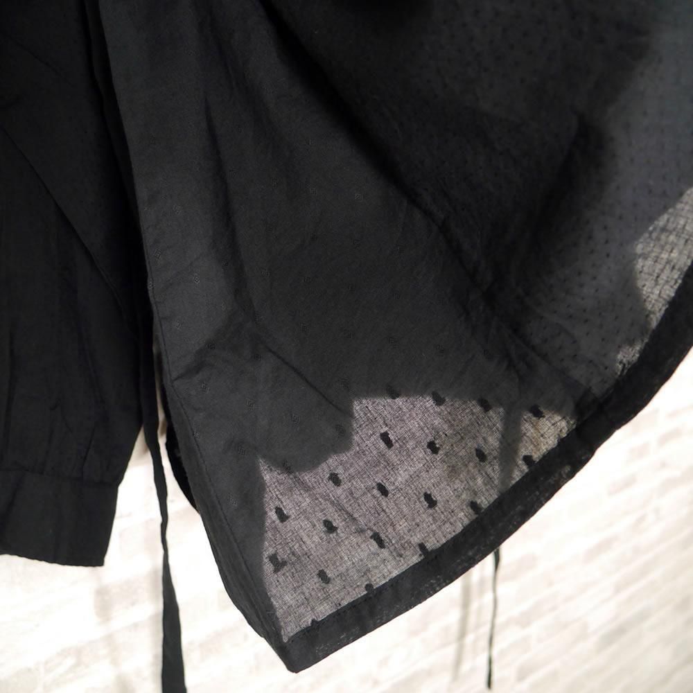 薄手のコットンドビー生地を使ったギャザーが可愛いスモックブラウスです。2種類の生地をパッチワークで繋げた生地使い。日に透けると大小ドット柄が透けて見えます。片側のウエストのギャザーを絞れる使用なので、シルエットの変化をお楽しみ頂けます。前後2WAYで着用可能です。